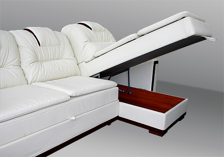 Угловая мягкая мебель «Янтарь 9» с оттоманкой Цена от 48 000 руб. Производитель: УМК г. Екатеринбург Механизм трансформации: выкатной механизм. Эффектный белый диван, оснащенный вместительным бельевым ящиком (подъемный механизм).   Дом мебели «Клен» представляет широкий ассортимент мебели: • кухни, • стенки, • детские, • спальни, • прихожие, • мягкая мебель, • офисная мебель, • шкафы-купе