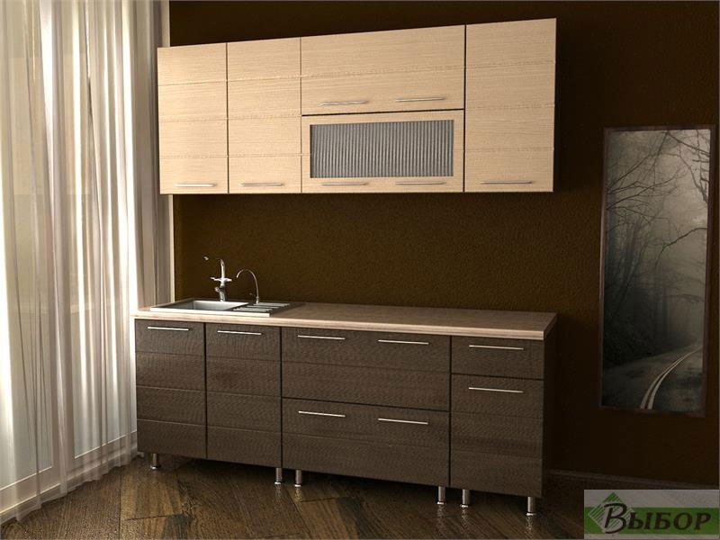 В комлекте: стол под мойку (круглая мойка в комплекте), стол рабочий на 600 с 2-мя выкатными ящиками, стол рабочий на 600 с дверкой, шкаф-сушка навесной на 600, шкаф навесной на 800 с 2-мя дверками (вставка стекло), шкаф навесной на 600 с 2-мя глухими дверками