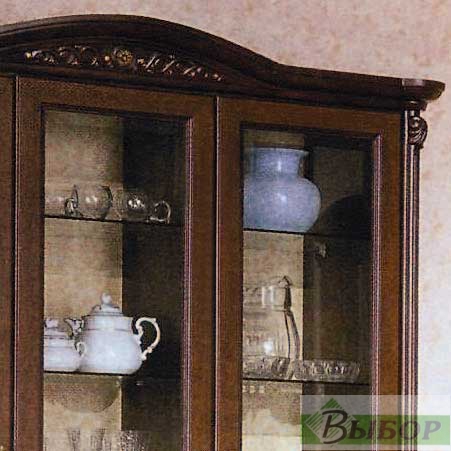 Важное достоинство гостиной «Афина» — наличие шкафов-витрин, украшенных пилястрами и роскошным карнизом. В таком «обрамлении» можно с гордостью демонстрировать гостям столь дорогие сердцу предметы: бабушкин сервиз и старинную вазу, подаренную на юбилей, коллекцию фарфоровых кукол и красивый подсвечник.