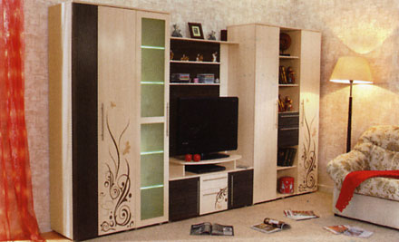 Сочетает в себе функциональность и стиль. Сочетание приятных цветов — «дуб венге» и «дуб млечный» — наполнит вашу гостиную теплом и уютом.