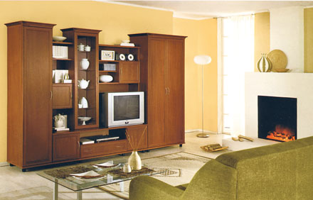 Антисимметричная модель. Имеется ниша под ТВ, аппаратуру, закрытая секция со стеклянной распашной дверцей, закрытые секции, открытые секции, выкатной ящик, платяной шкаф и шкаф-пенал. Дом мебели «Клен» представляет широкий ассортимент мебели: • кухни, • стенки, • детские, • спальни, • прихожие, • мягкая мебель, • офисная мебель, • шкафы-купе.