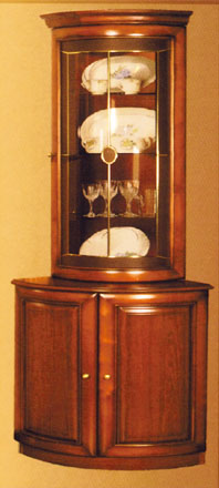 Витрина угловая в классическом стиле с радиусными фасадами. Занимает минимум пространства в помещении, сохраняя свою функциональность. Дом мебели «Клен» представляет широкий ассортимент мебели: • кухни, • стенки, • детские, • спальни, • прихожие, • мягкая мебель, • офисная мебель, • шкафы-купе.