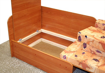 Диван детский с выдвижным механизмом. Удобный механизм трансформации позволит детям самостоятельно раскладывать диван. Одним из плюсов является доступная цена. Цена от 4 200 руб.